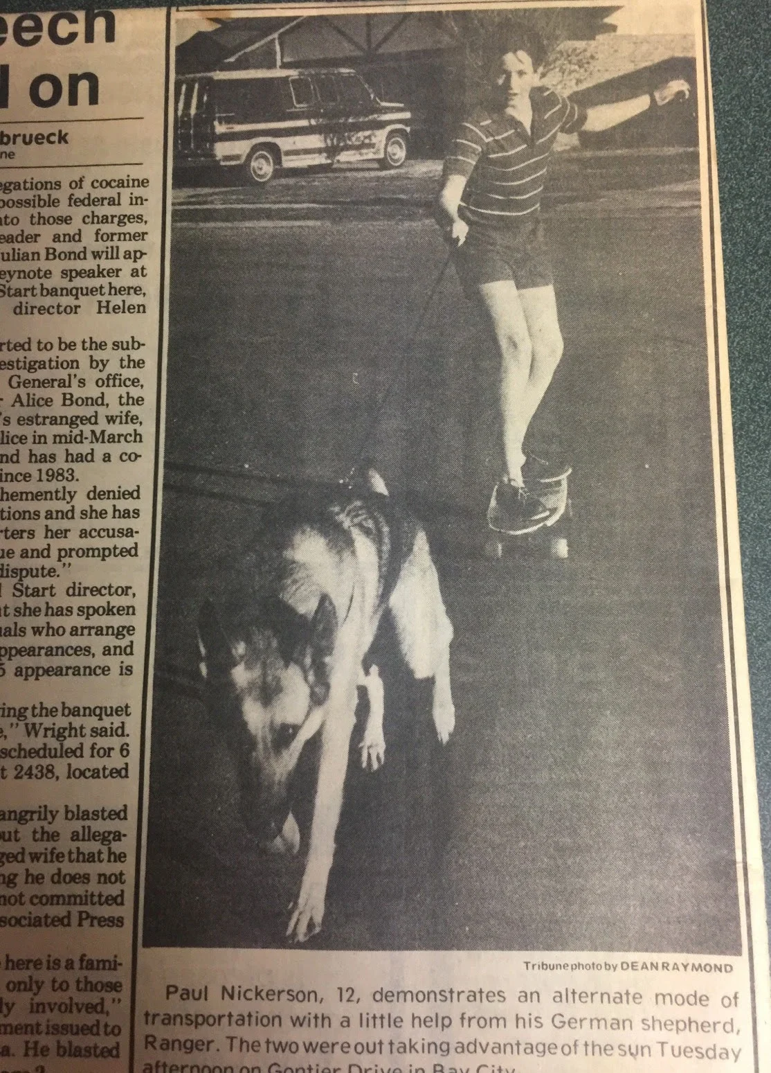 A look back to 1987 when Paul made the front page of the local newspaper, top of the fold, baby! This boy was straight up obsessed with Jack London novels and had dreams of driving a sled with a pack of dogs. But here's the thing, Paul was living in the land of cowboys and cacti - Texas. Ain't no snow in sight. But, he was a resourceful kid and didn't let that stop him. Every day after school, he'd put a harness on his furry best friend, hop on his skateboard, and live out his sledding dreams in the streets of Texas. Now that's what you call making the best of a bad situation, Y'ALL!